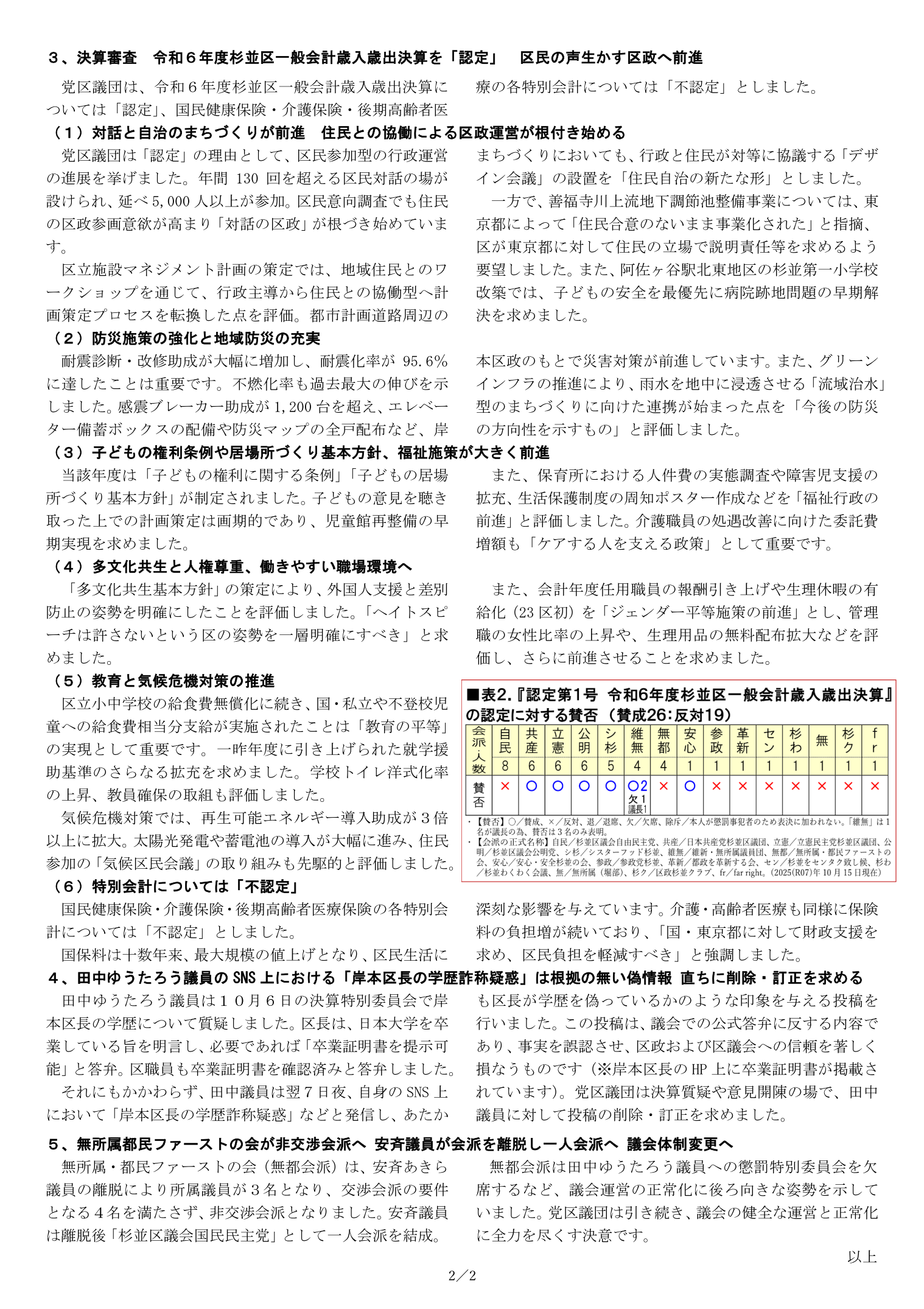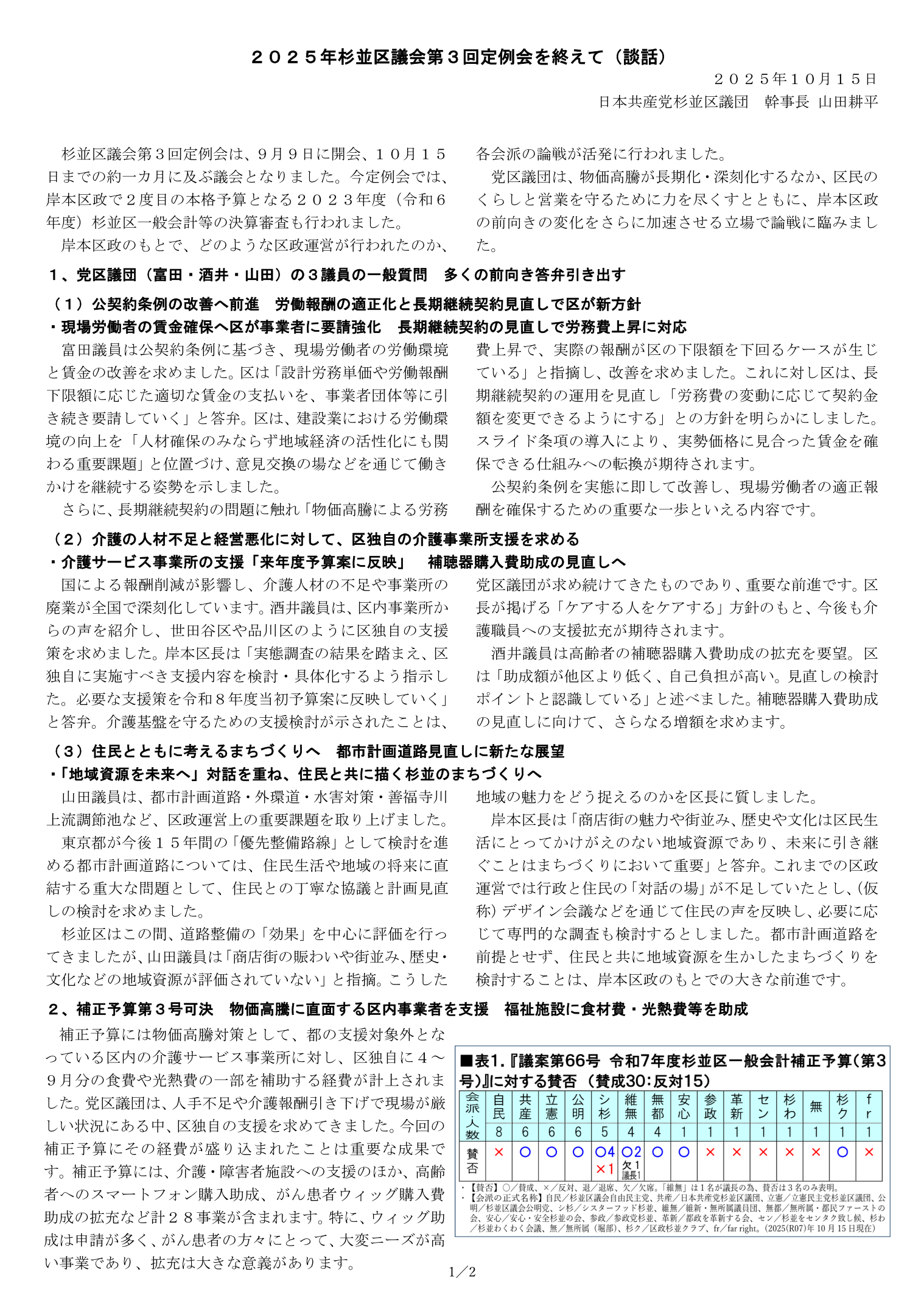 2025年杉並区議会第3回定例会を終えて(談話) |