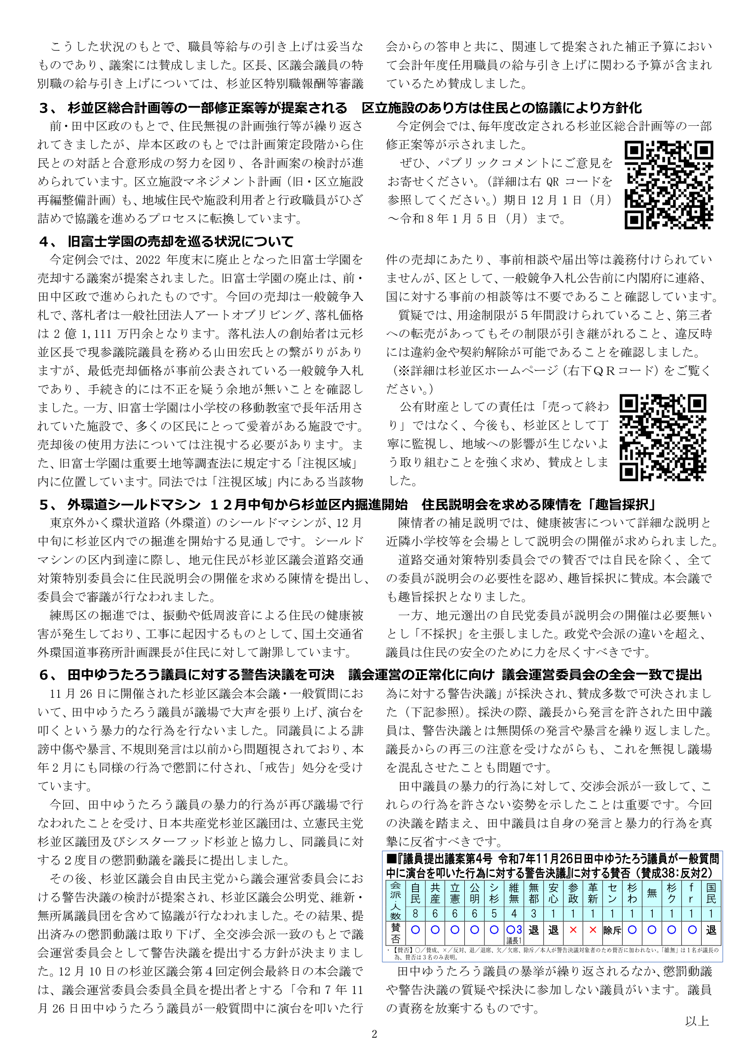 2025年杉並区議会第4回定例会を終えて(談話) |