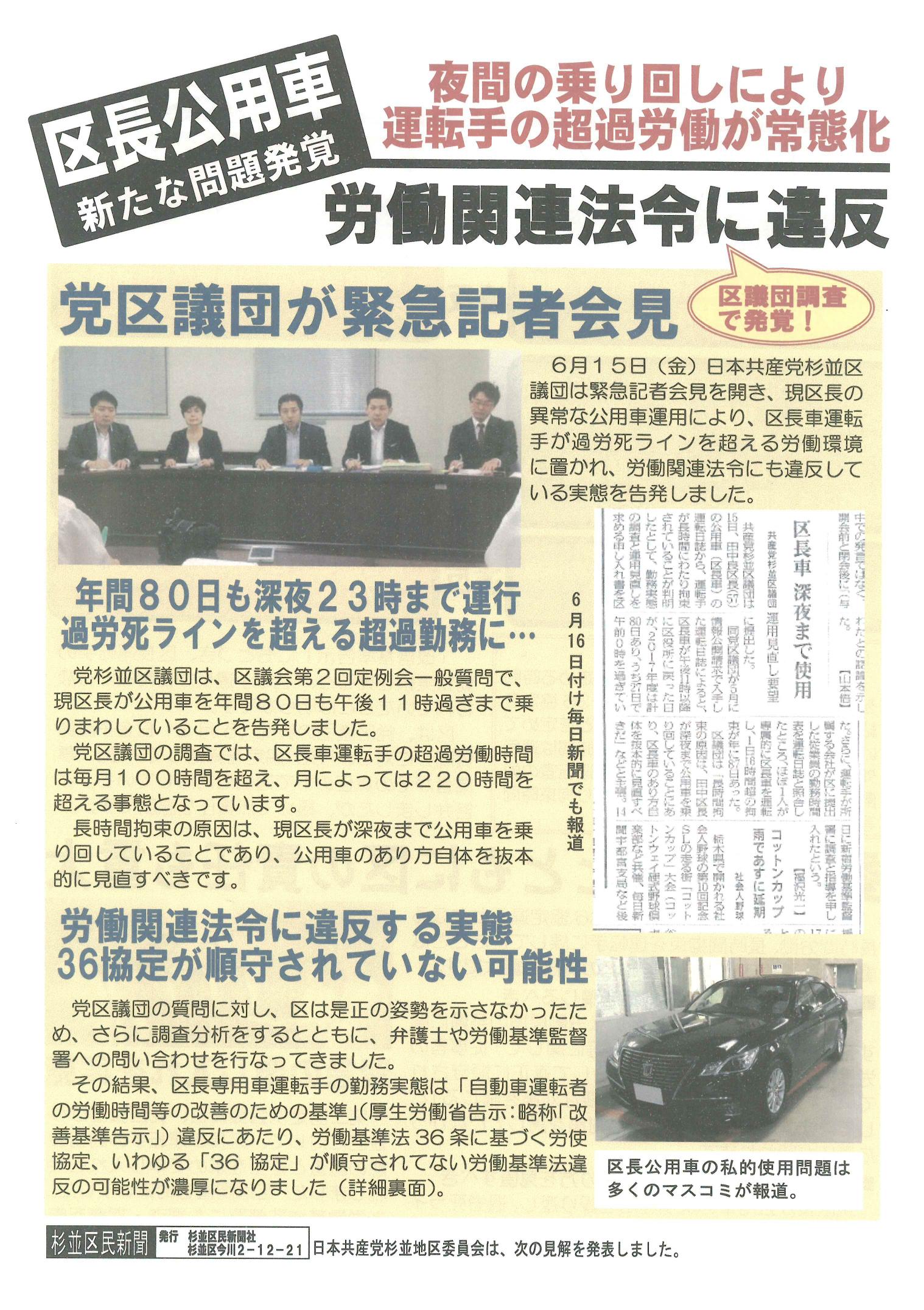 杉並区民新聞(田中良区長による区長公用車の新たな問題発覚 労働関連法令に違反)