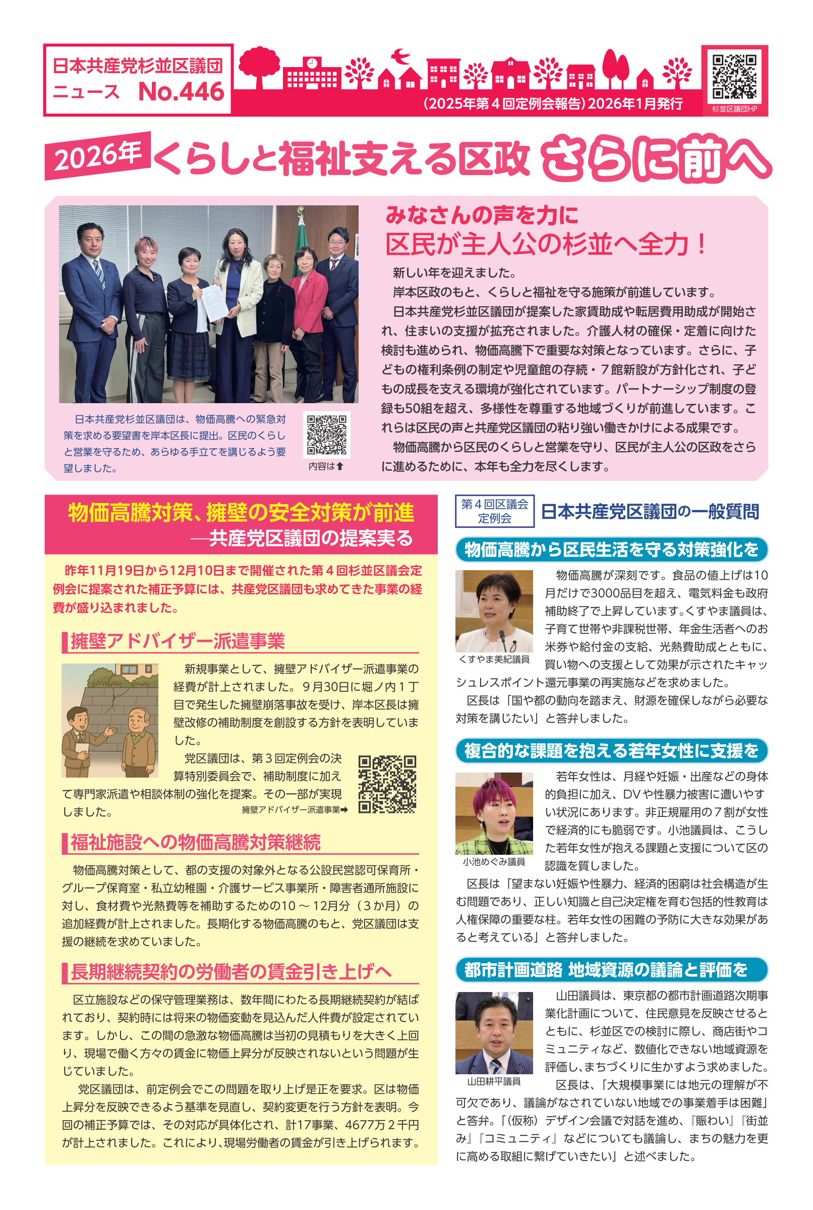 日本共産党杉並区議団ニュースNO.446(杉並区議会第4回定例会報告_2026年1月号) |