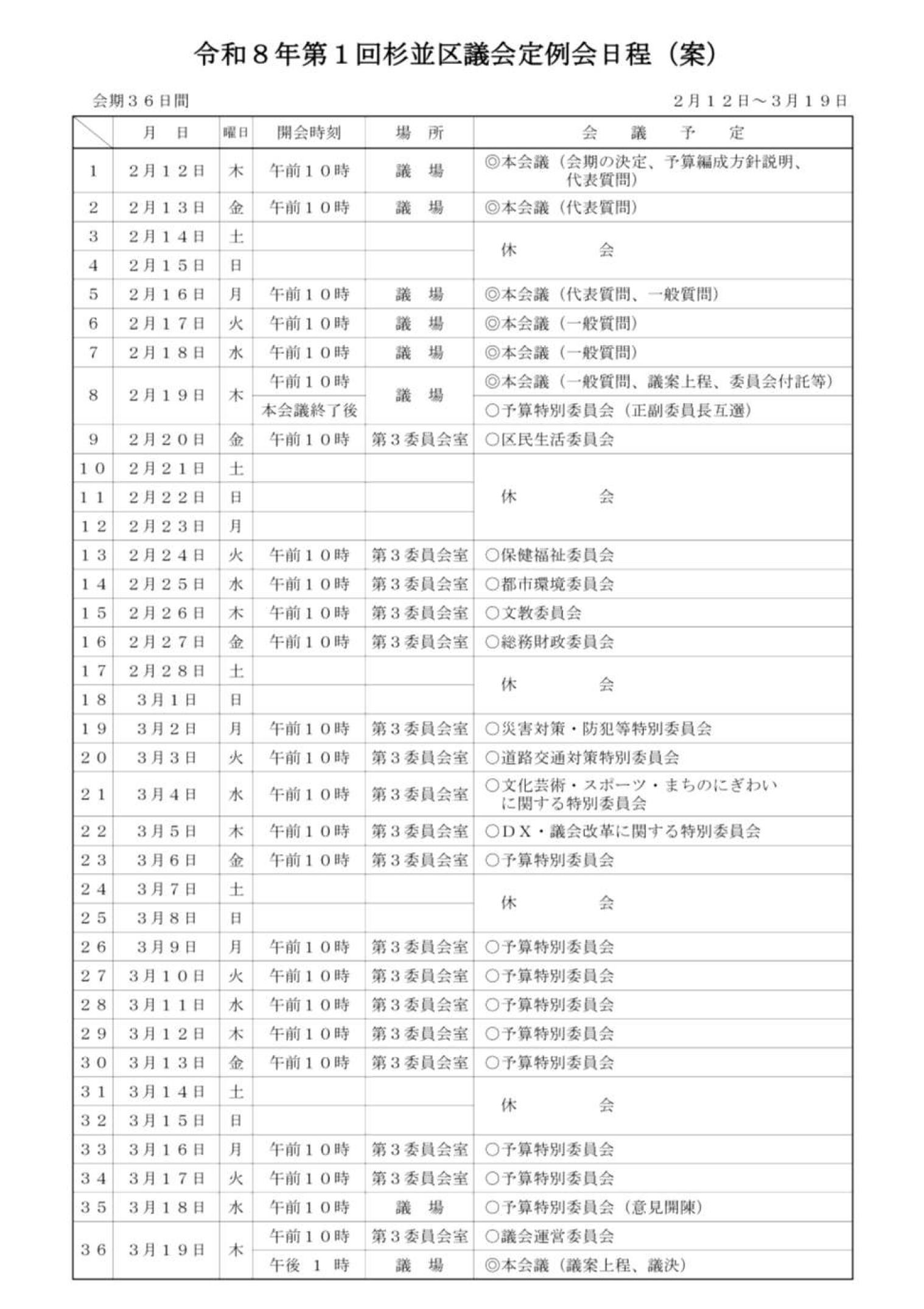 日本共産党杉並区議団ニュースNO.447(杉並区議会第1回定例会のおしらせ_2026年2月号)を発行しました。 ぜひ、傍聴にお越しください。 (※前の質問者の質問時間によって開始時間が前後する場合があります。お早めにお越しください。当日区役所中棟3階議会事務局で受付をお願いします。) ◆インターネットで生中継と録画中継を行っています。 リンク 本会議の生中継 本会議の録画中継 (会議終了からおおむね24時間後(土曜日・日曜日・祝日を除く)に、「速報版」をご覧になれます) PDF版の区議団ニュース(印刷用)は、以下のファイルをダウンロードしてください。 (日本共産党杉並区議団ニュースNO.447(杉並区議会第1回定例会のおしらせ_2026年2月号)) |