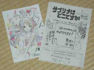 最終日の5日(日)は仕事があったために参加できなかったが、好天に恵まれた三日間のうちでも最高の天気。この日はカミさんが子ども2人を連れて参加し、中央舞台には一度も立ち寄らずに、もっぱら買い物などに集中。息子(中学1年)はスポーツ広場の「ビームライフル」に挑戦し、娘は似顔絵(写真参照)を書いてもらった。そのかたわら、カミさんはモノを食べ続けた。